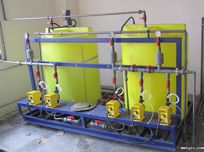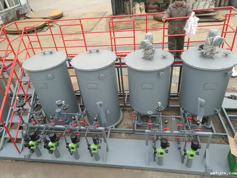 加药装置通过不同的工艺设计,准确配置各类固体和液体的化学药品的溶液,再用计量泵准确投加,以达到各种设计要求。如除垢、除氧、混凝、加酸、加碱等。加药过程可手动操作,也可通过PC机、磁翻板液位计、PH计、行程控制器、变频器等各种电器、仪表、使加药装置成为机电一体化产品、实现自动控制。