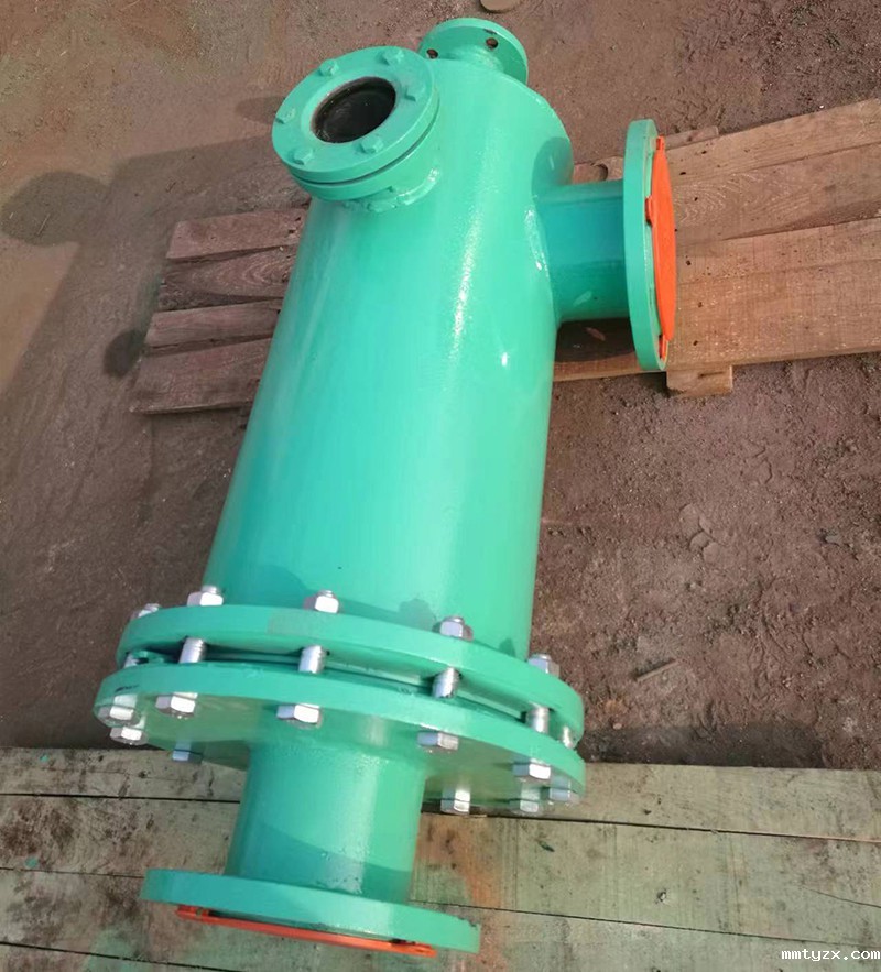 1、Y型内部为单根不锈钢绕丝滤元型式,采用O型密封圈,设备内衬1751半硬橡胶。
